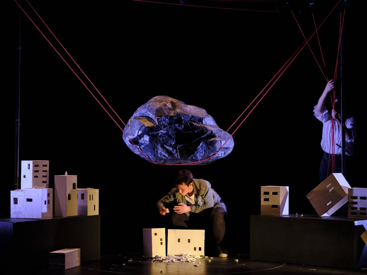 La jeune metteuse en scène Lou Simon fait du plateau le lieu de rapprochement de mondes qui ne se rencontrent jamais. Le texte, qu’elle a écrit avec la dramaturge Lisiane Durand, s’est inspiré de l’essai La Théorie du drone de Grégoire Chamayou. Il puise dans la retranscription d’échanges entre militaires de l’armée de l’air, dans le journal de guerre d’un écrivain palestinien publié en 2015 et dans la perplexité de jeunes adultes d’aujourd’hui. Plus qu’une prise de conscience politique, une pièce de « théâtre d’objets documentaire » qui propose une réflexion sur l’indifférence au réel que peut générer la technologie moderne. À hauteur humaine.